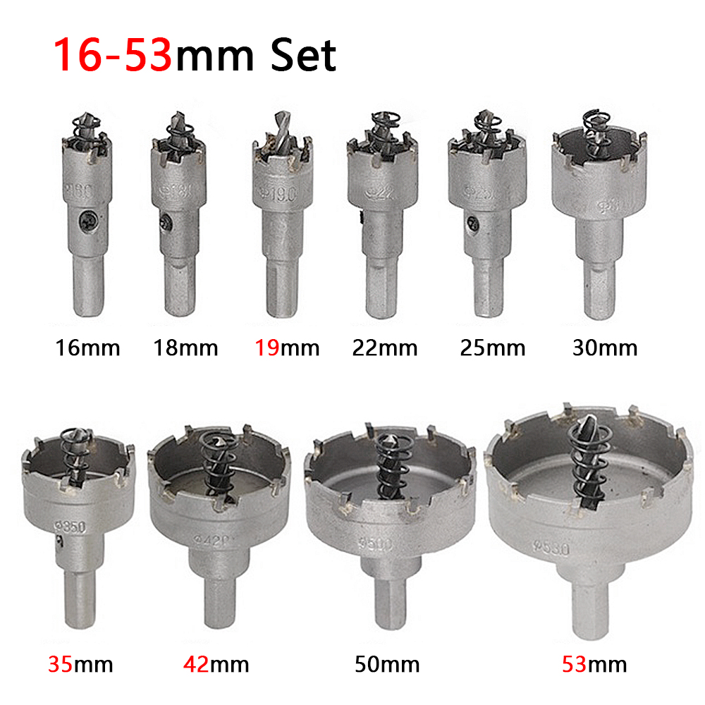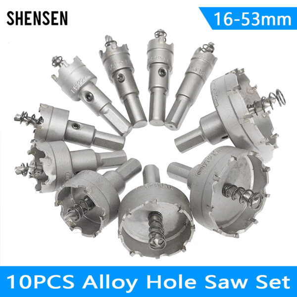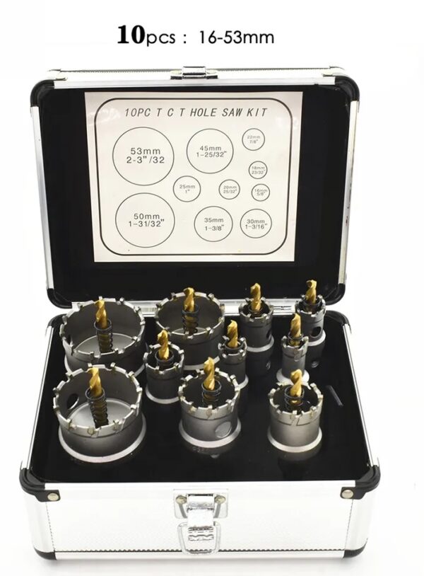 10Pcs16-53mm Alloy Hole Saw Set Carbide Tip TCT Metal Cutter Core Drill Bit Kits for Stainless Steel Metal Drilling Crown