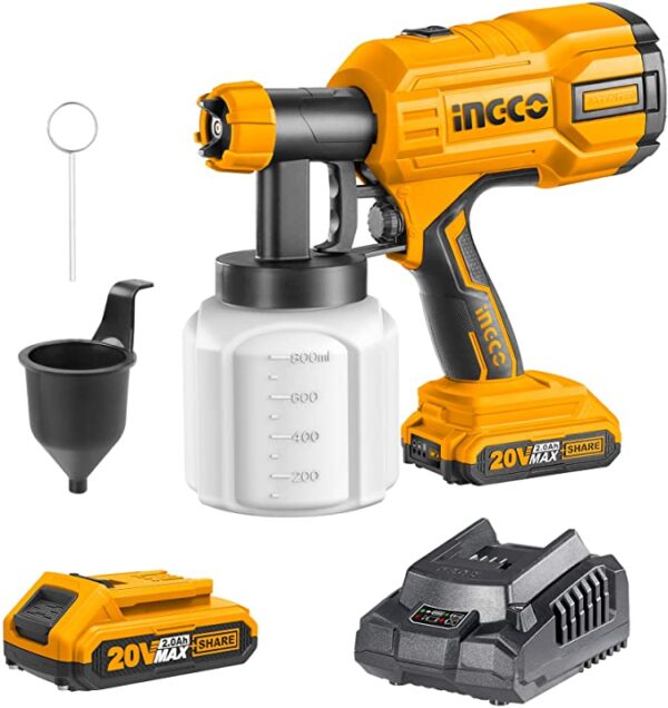 Ingco Cordless Paint Sprayer Fence Paint Sprayer with Battery Pack and Charger