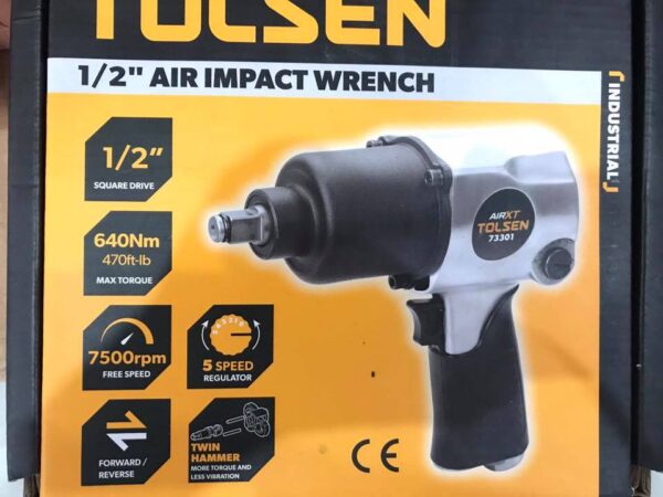 Tolsen 1/2″ Twin Hammer Air Impact Wrench (650Nm Torque) 73301 AirXT Series For Air Compressor