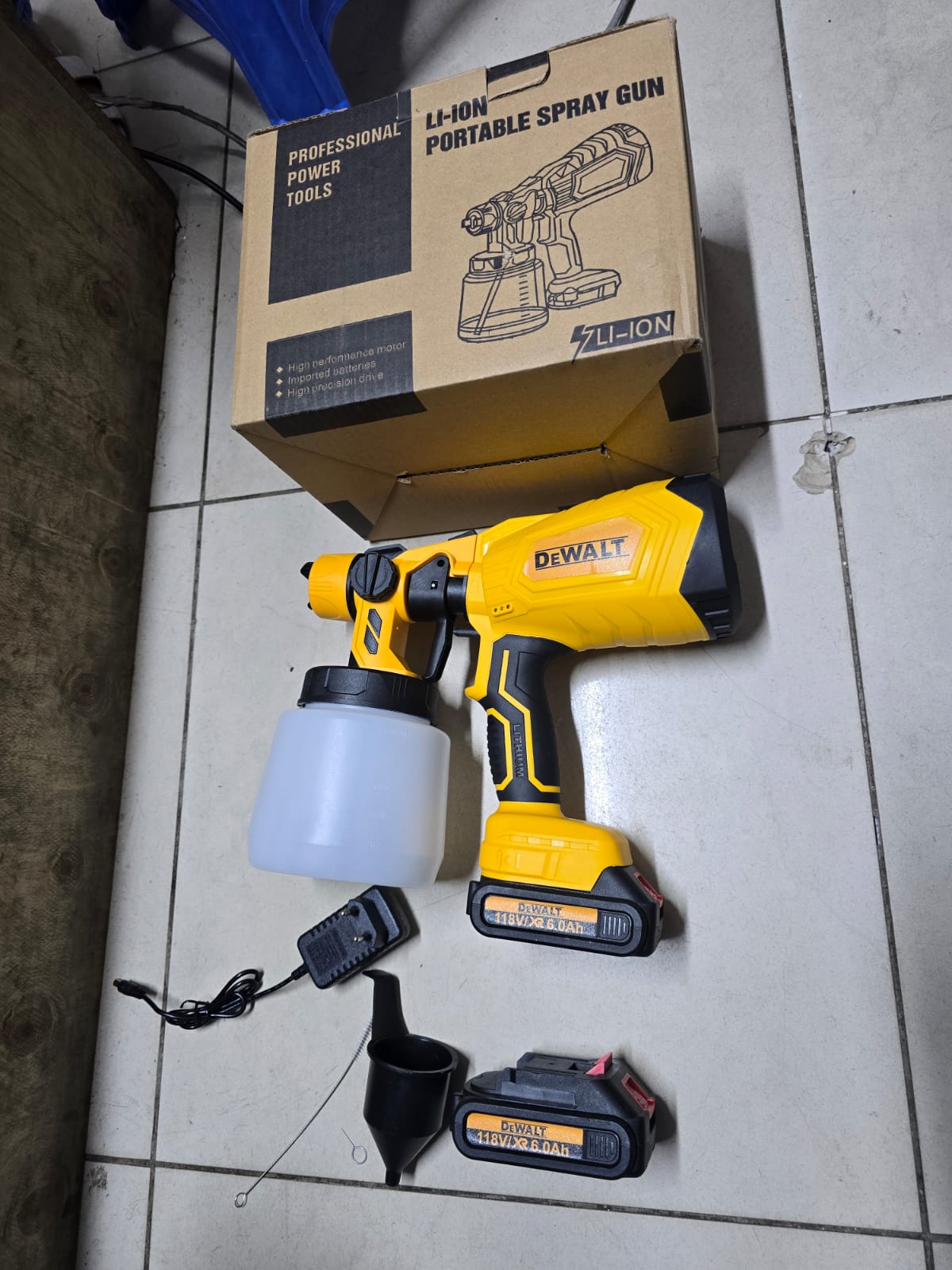 Voltage:20V Spraying Pressure:0.1-0.2Bar Max.flow:600ml/min Max.viscosity:40DIN-s Container capacity:800ml With 1PCS viscosity measuring cup With 1PCS nozzle cleaning needle NO battery and charger included Packed by color box
